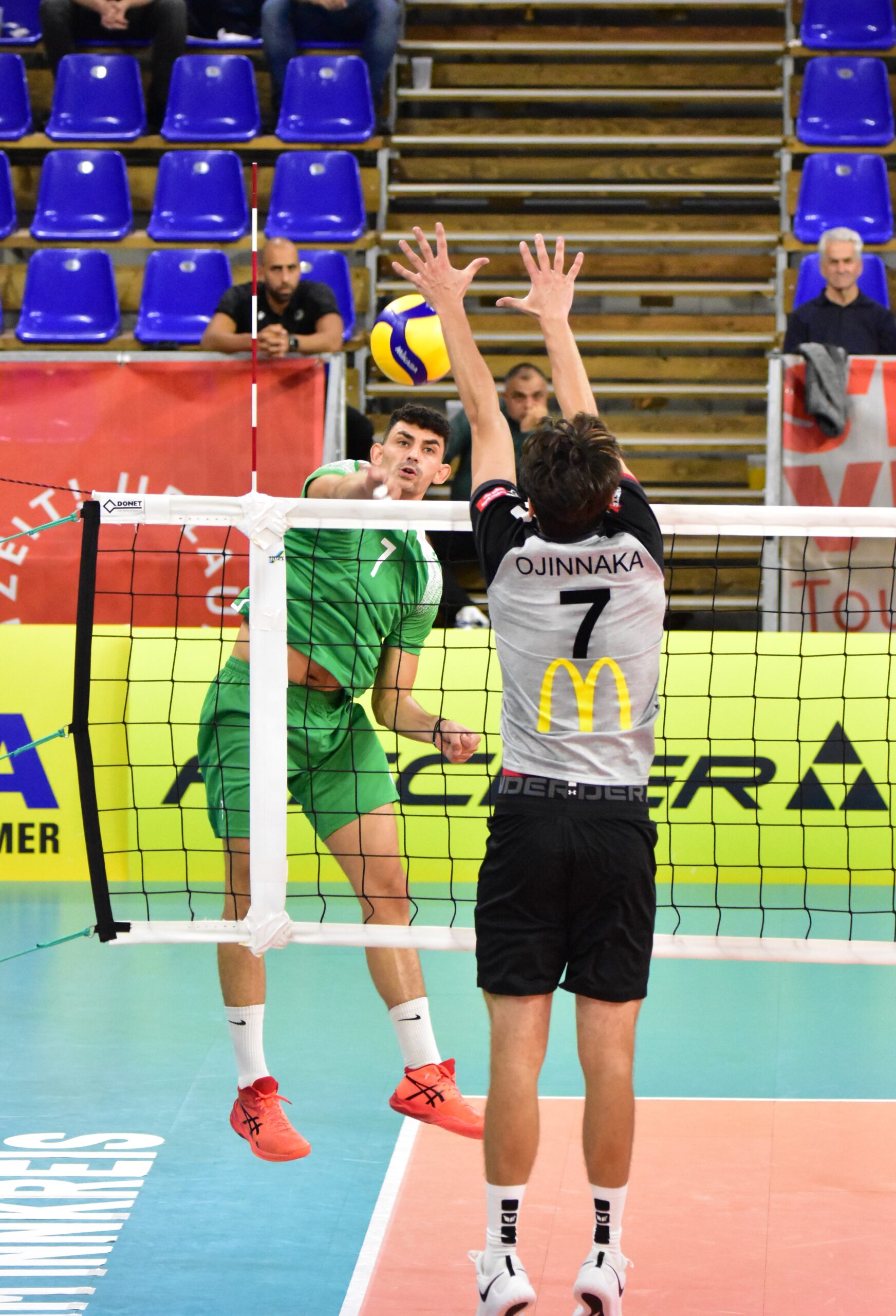 Im ersten Spiel – powered by H+Hotel, welches am 12. Oktober, um 19:30 angepfiffen wurde, hatten die Innviertler leider Schwierigkeiten in das Spiel zu finden. Der erste Satz ging mit 19:25 an die Gäste. Im zweiten Satz konnten die Rieder teilweise die Oberhand gewinnen und sich gegen Ende des Satzes mit 26:24 durchsetzen. In den Sätzen 3 + 4 konnten die Zyprioten mit einer stabilen Leistung die Rieder unter Druck setzen und beide Sätze gewinnen.